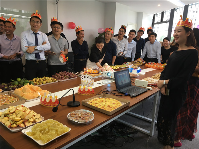 2016年9月14日,華威公司在千花島營(yíng)銷中心會(huì)議室舉辦了簡(jiǎn)單而熱鬧的“2016年第三季度員工生日會(huì)”,人資行政部精心準(zhǔn)備了實(shí)用的禮物和豐盛的美食,為26位壽星慶祝。